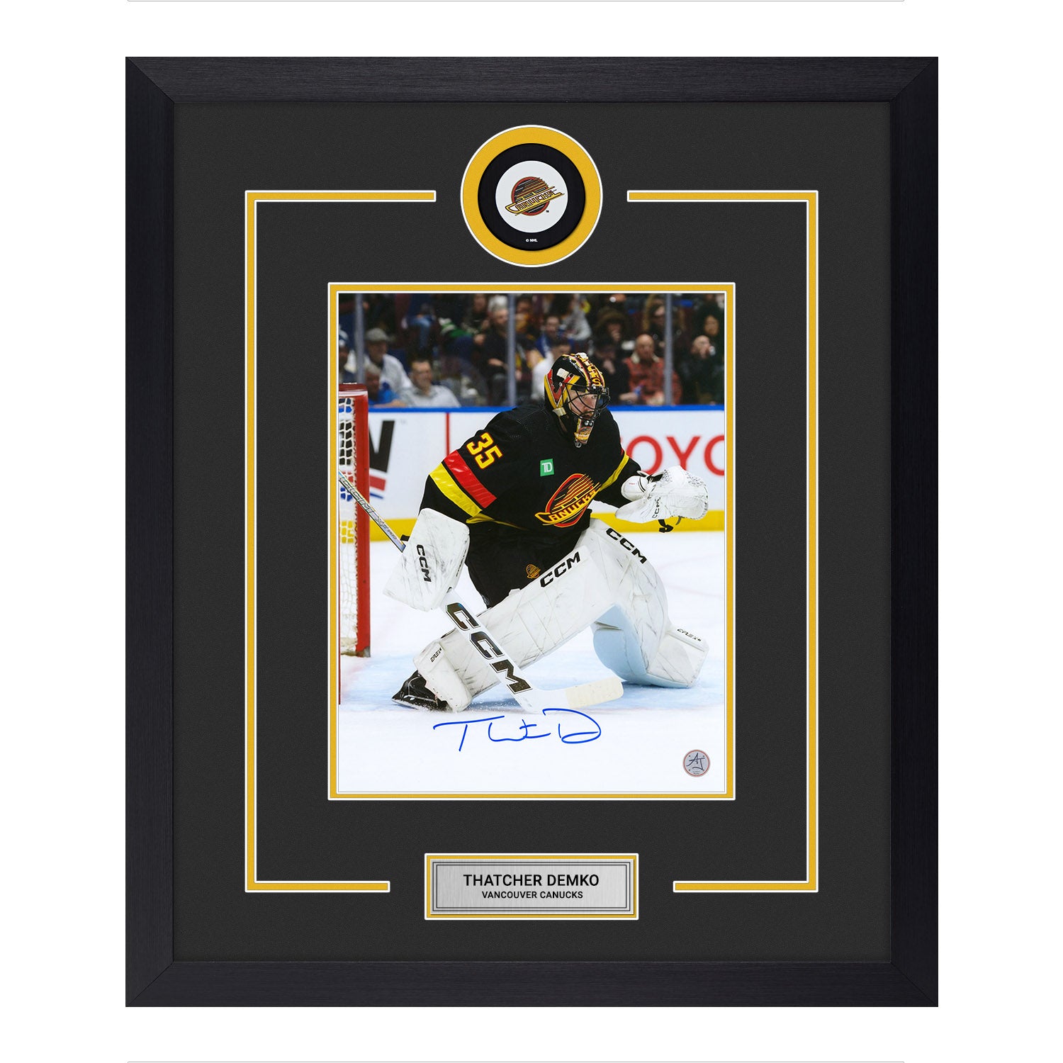 Thatcher Demko Autographed Vancouver Canucks Puck Logo 23x27 Frame