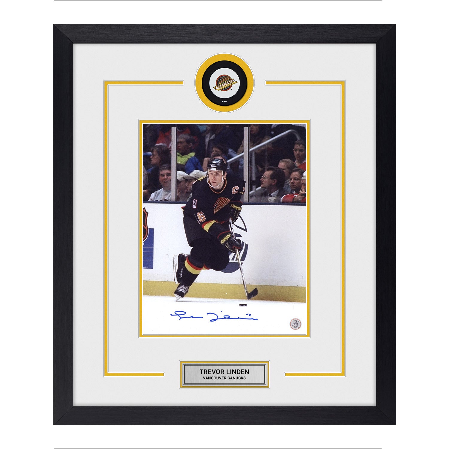 Trevor Linden Autographed Vancouver Canucks Puck Logo 23x27 Frame