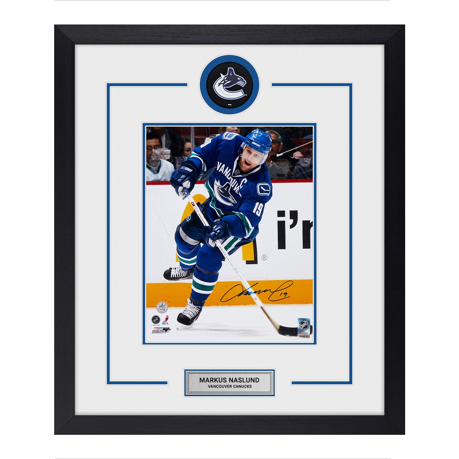 Markus Naslund Signed Vancouver Canucks Puck Logo 23x27 Frame