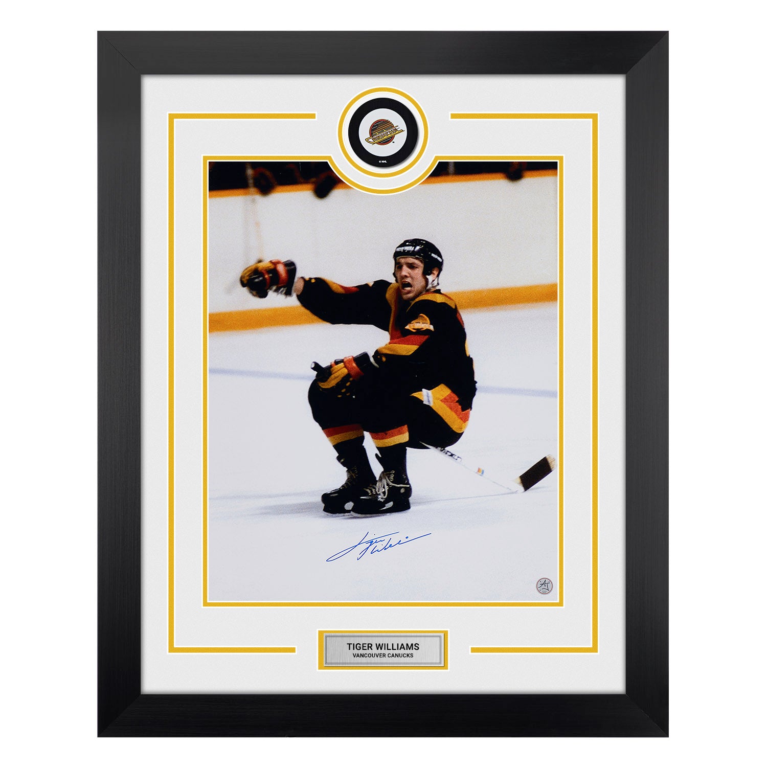 Tiger Williams Autographed Vancouver Canucks Puck Logo 26x32 Frame