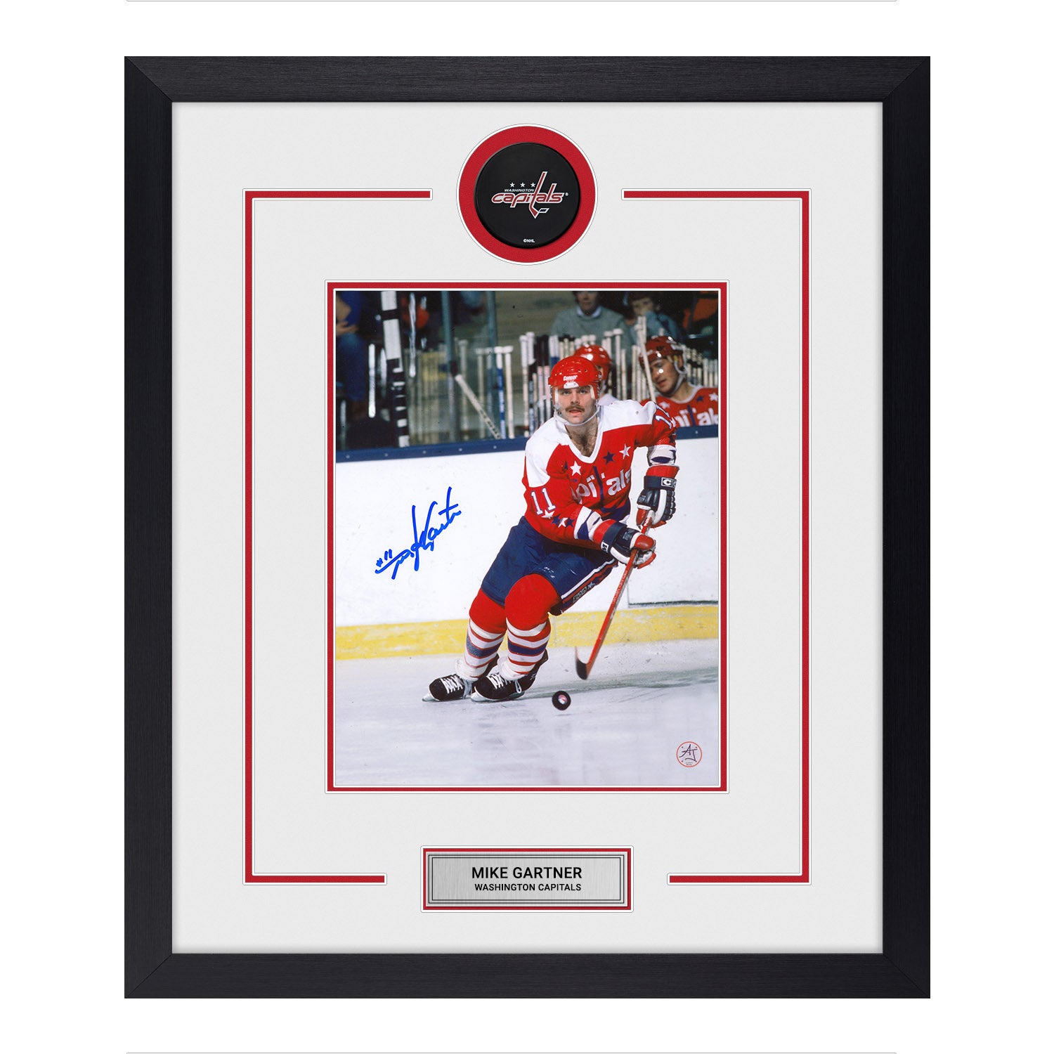 Mike Gartner Signed Washington Capitals Puck Logo 23x27 Frame