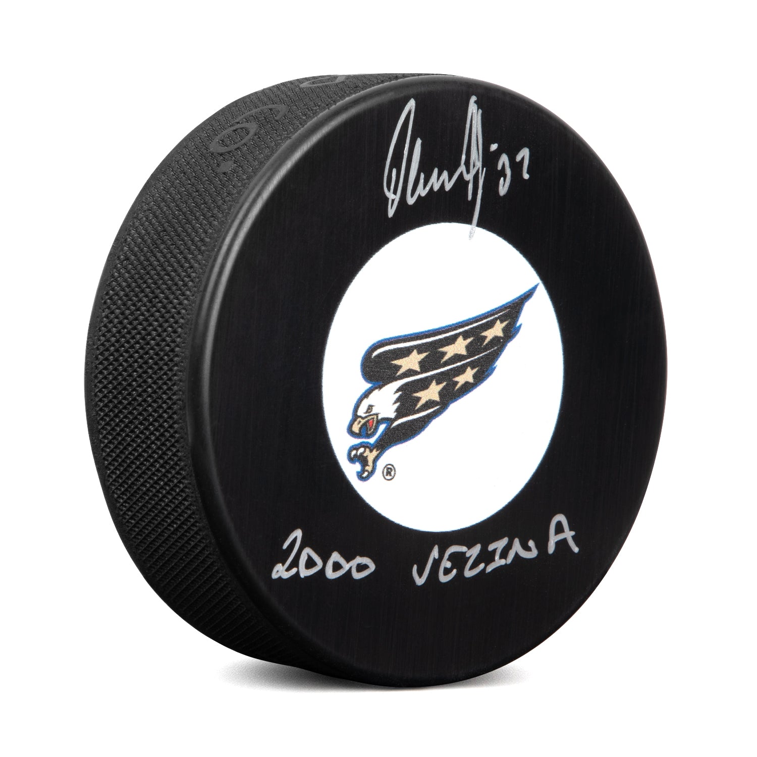 Olaf Kolzig Signed Washington Capitals Retro Logo Puck with 2000 Vezina Note