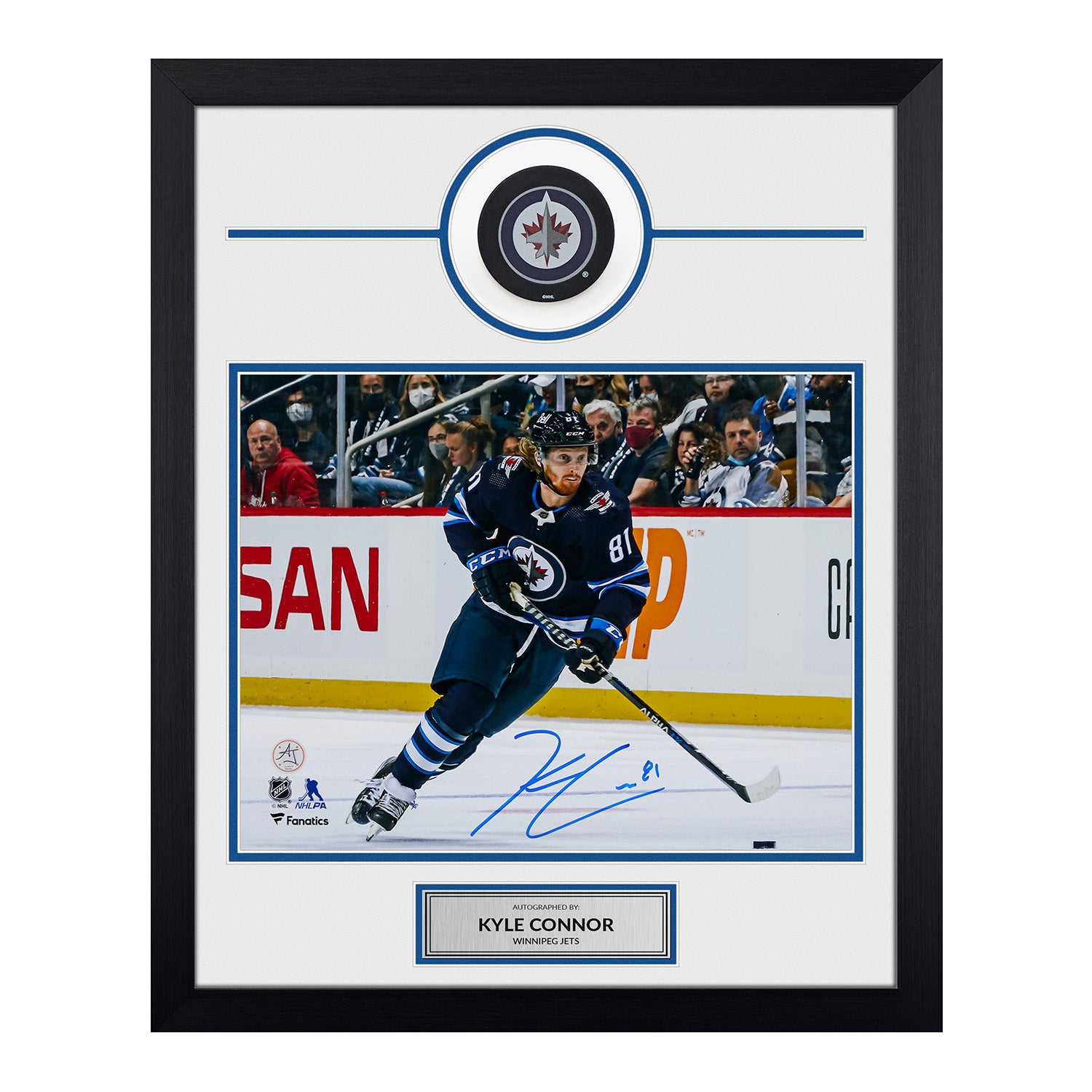 Kyle Connor Signed Winnipeg Jets Puck Logo 19x23 Frame