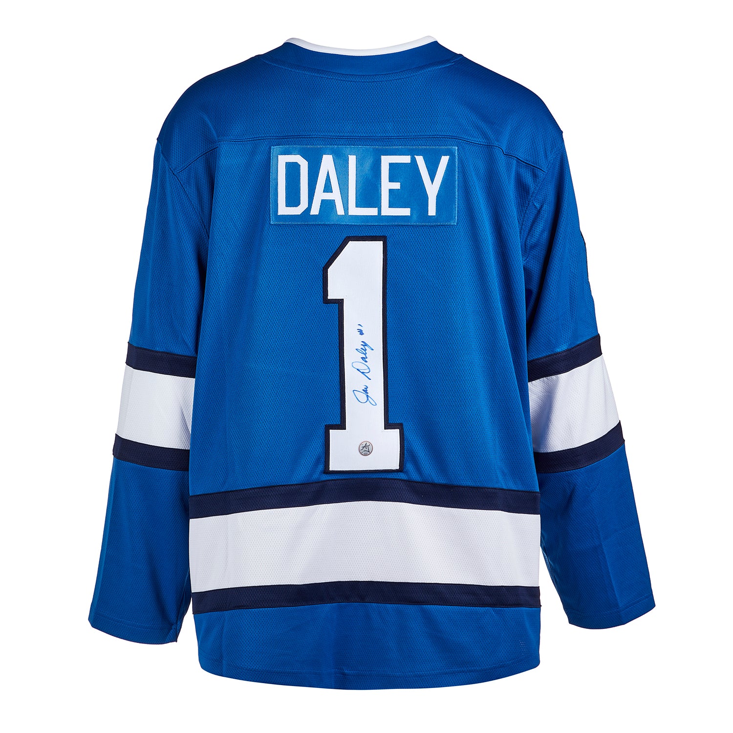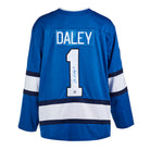 • This hockey jersey is hand-signed by Joe Daley.