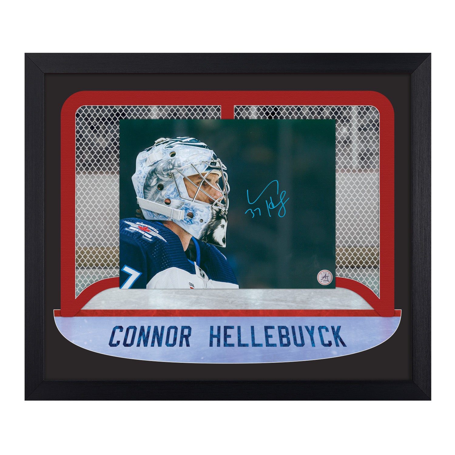Connor Hellebuyck Signed Winnipeg Goalie Mask Between The Pipes 23x27 Frame