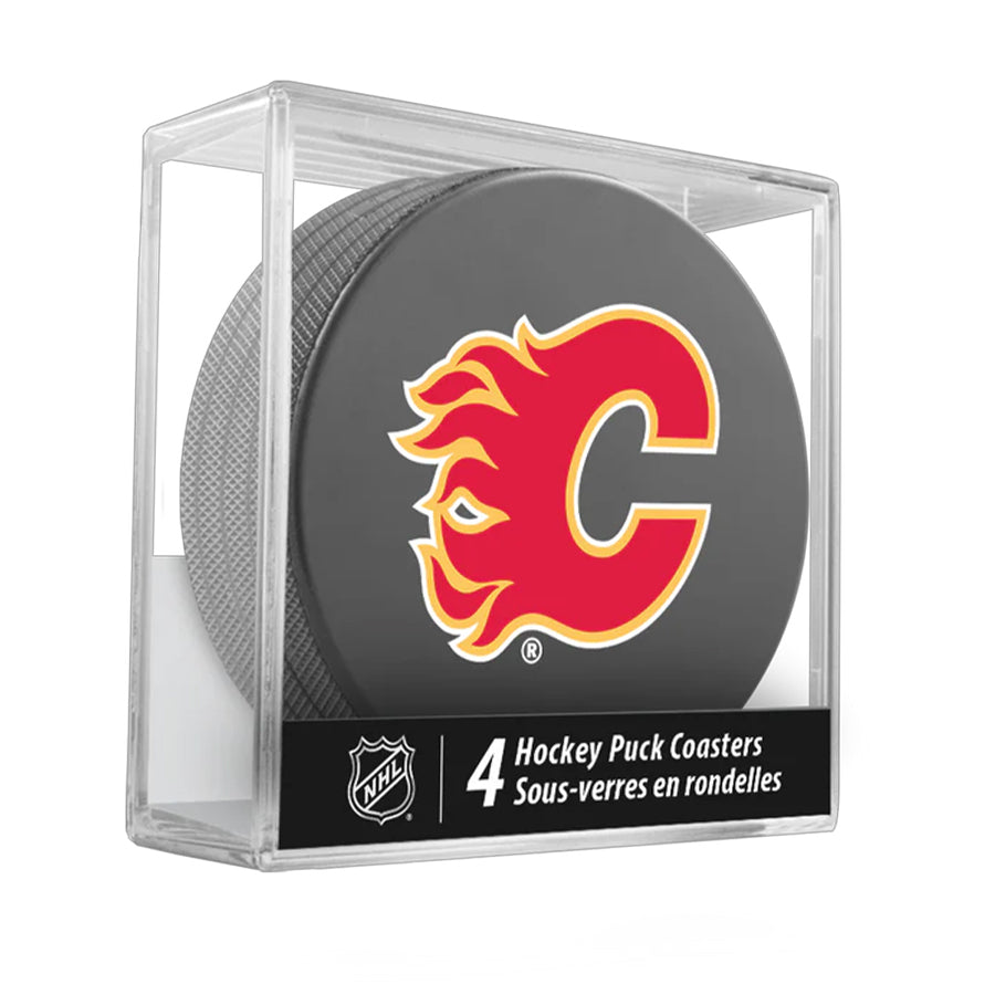 Calgary Flames Team Logo Hockey Puck Drink Coasters (4 Pack)