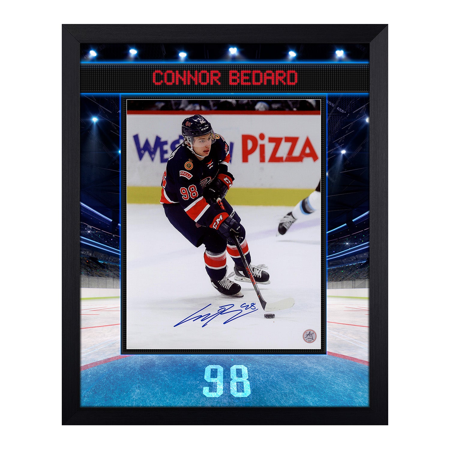 Connor Bedard Autographed Regina Pats Ribbon Board 19x23 Frame