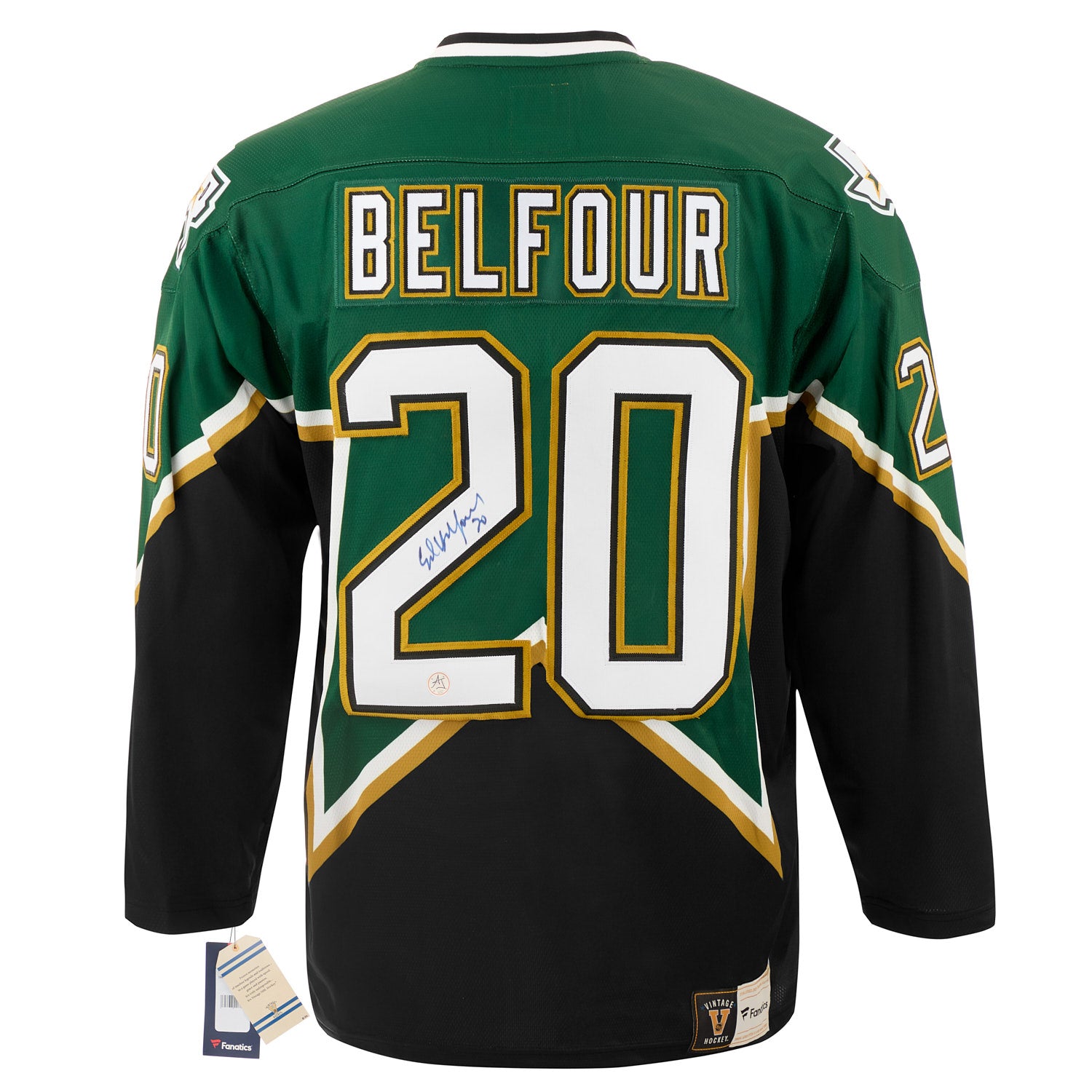 Ed Belfour Autographed Dallas Stars Fanatics Throwback Jersey