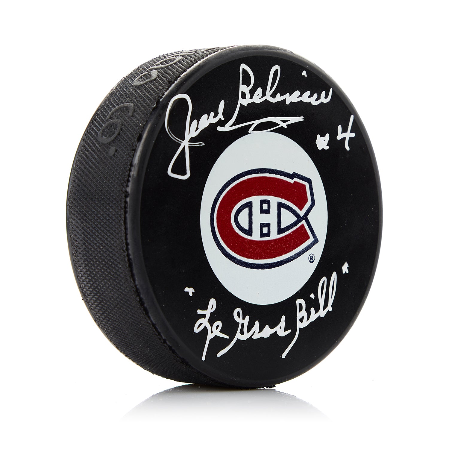 Jean Beliveau Signed Montreal Canadiens Hockey Puck with Le Gros Bill Note