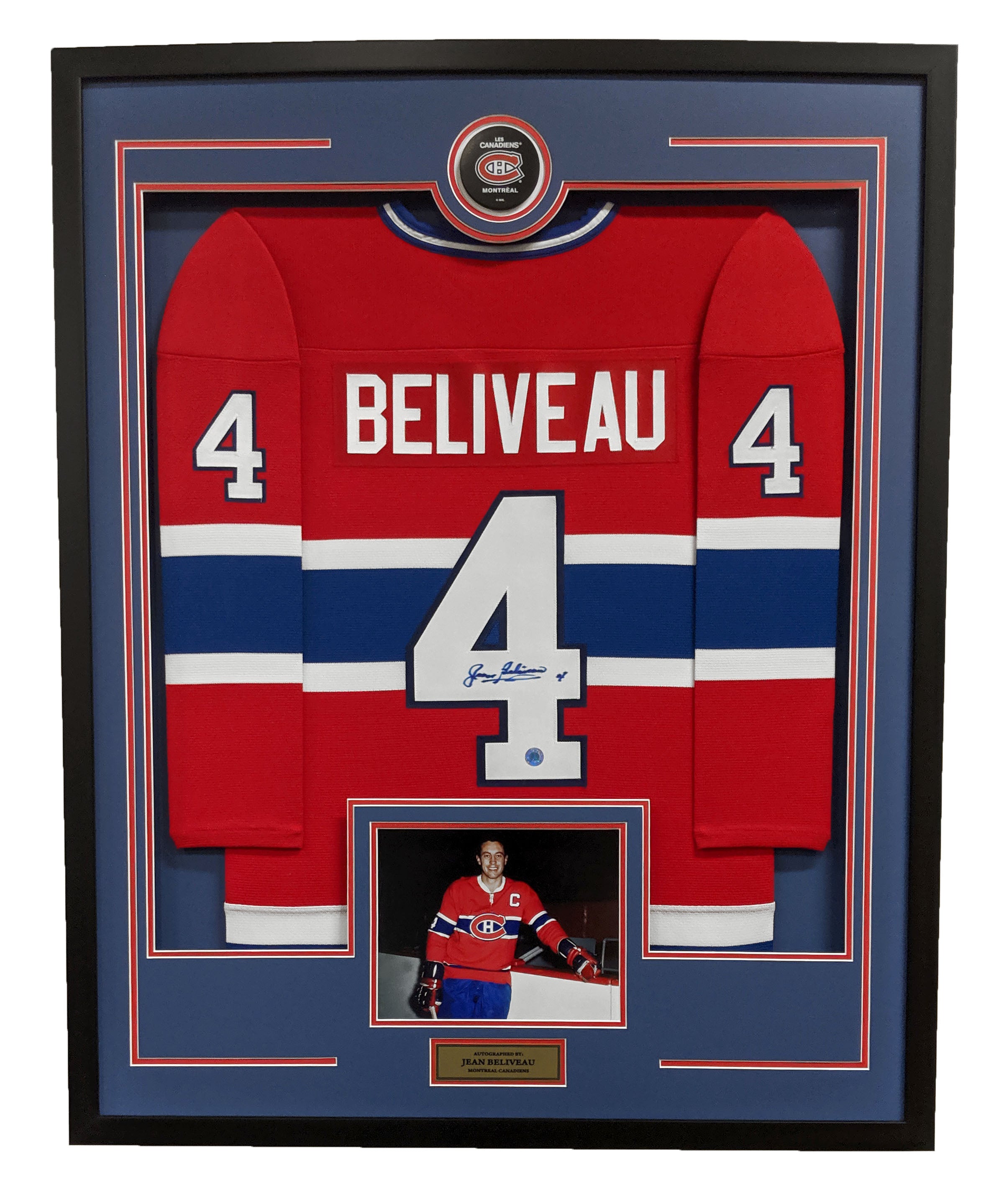 Jean Beliveau Signed Montreal Canadiens Puck Logo 36x44 Jersey Frame