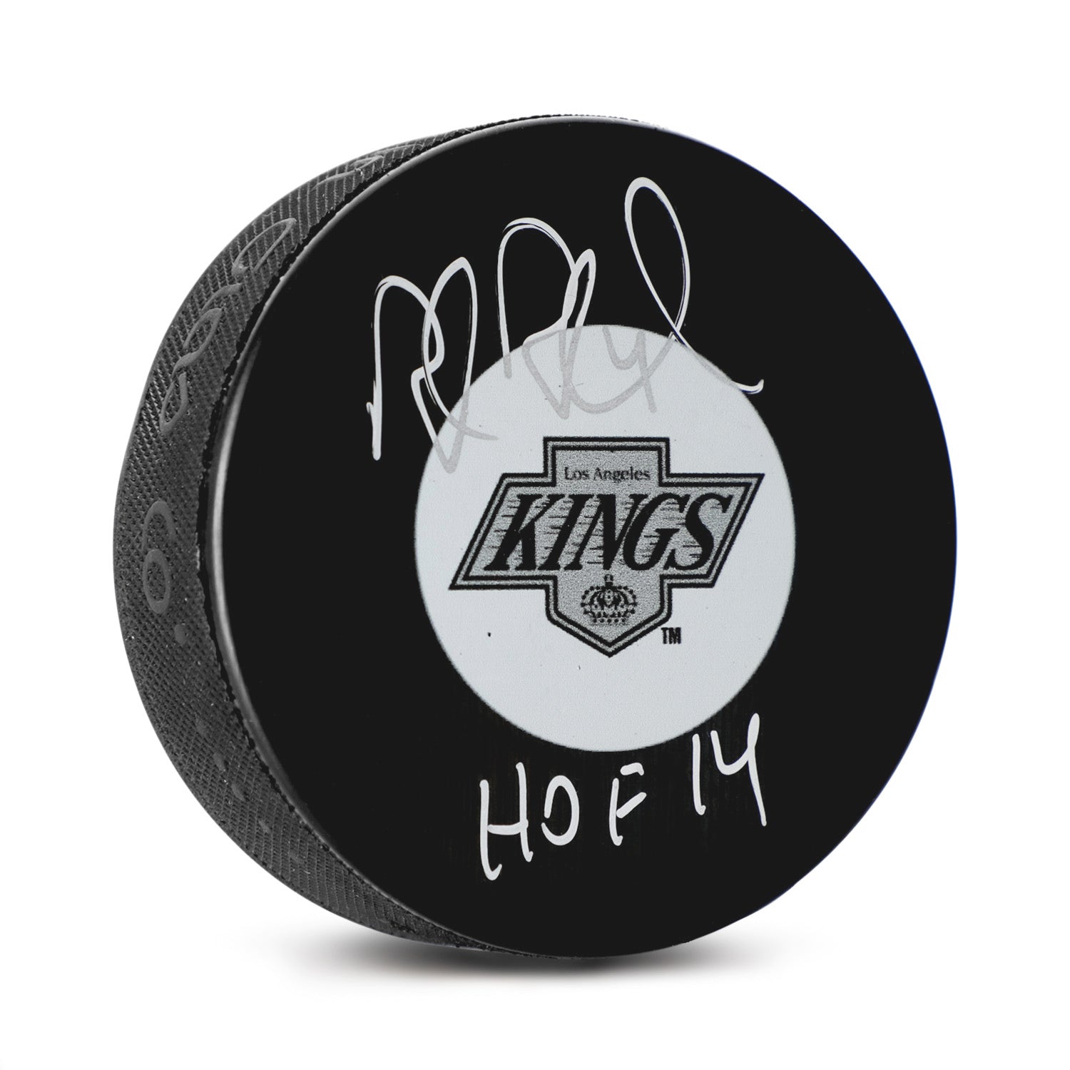Rob Blake Signed Los Angeles Kings Vintage Logo Puck with HOF Note