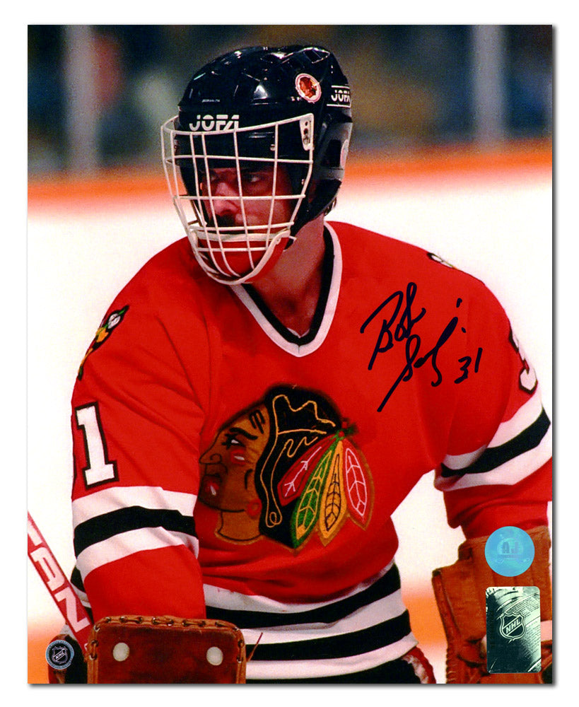 Bob Sauve Signed Chicago Blackhawks Goalie Mask Profile 8x10 Photo