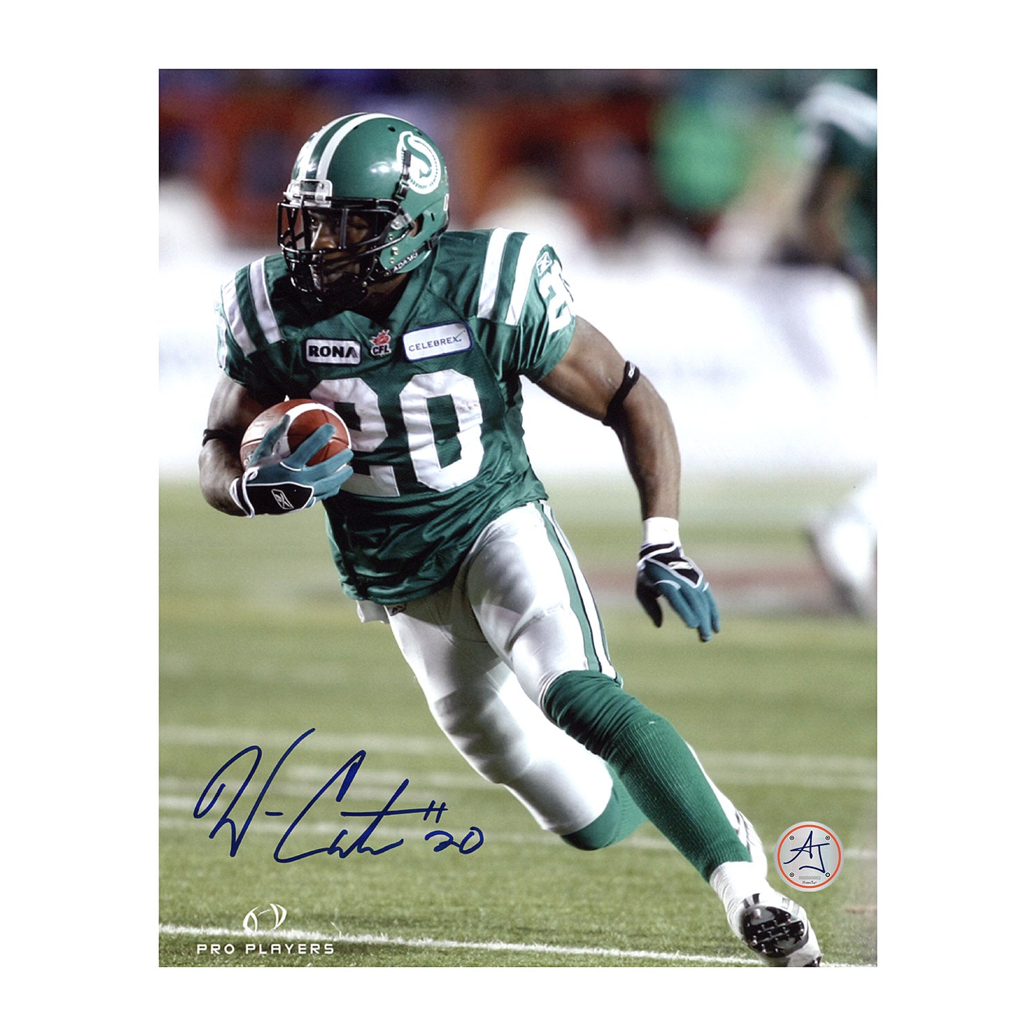 Wes Cates Autographed Saskatchewan Roughriders Football Action 8x10 Photo
