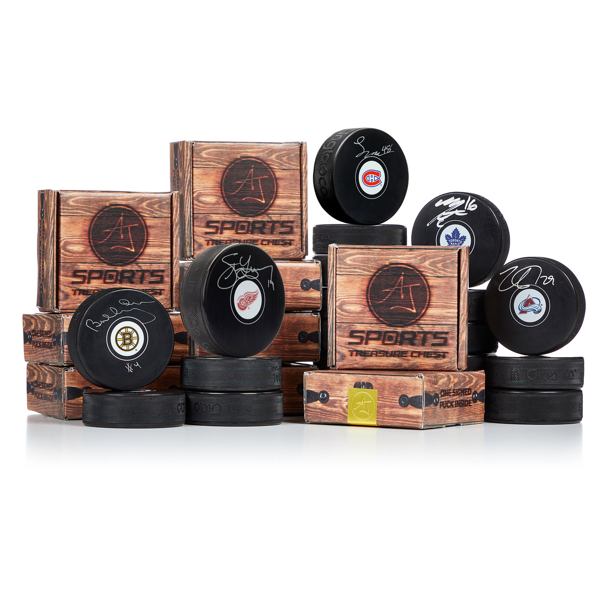 AJ Sports Hockey Heroes vs Legends 12 Autographed Pucks Treasure Chest