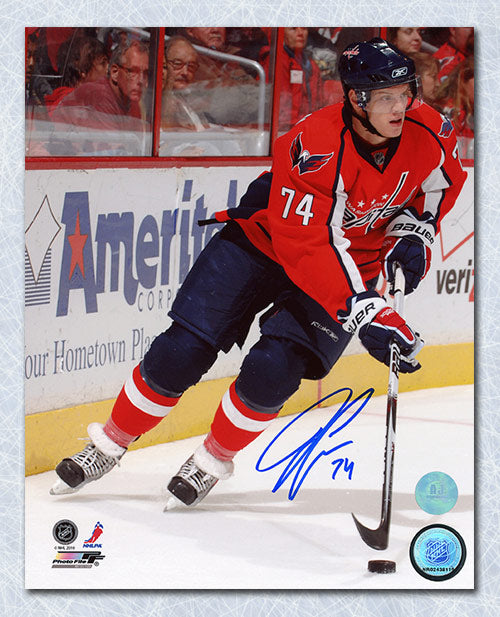 John Carlson Autographed Washington Capitals Puck Rush 8x10 Photo
