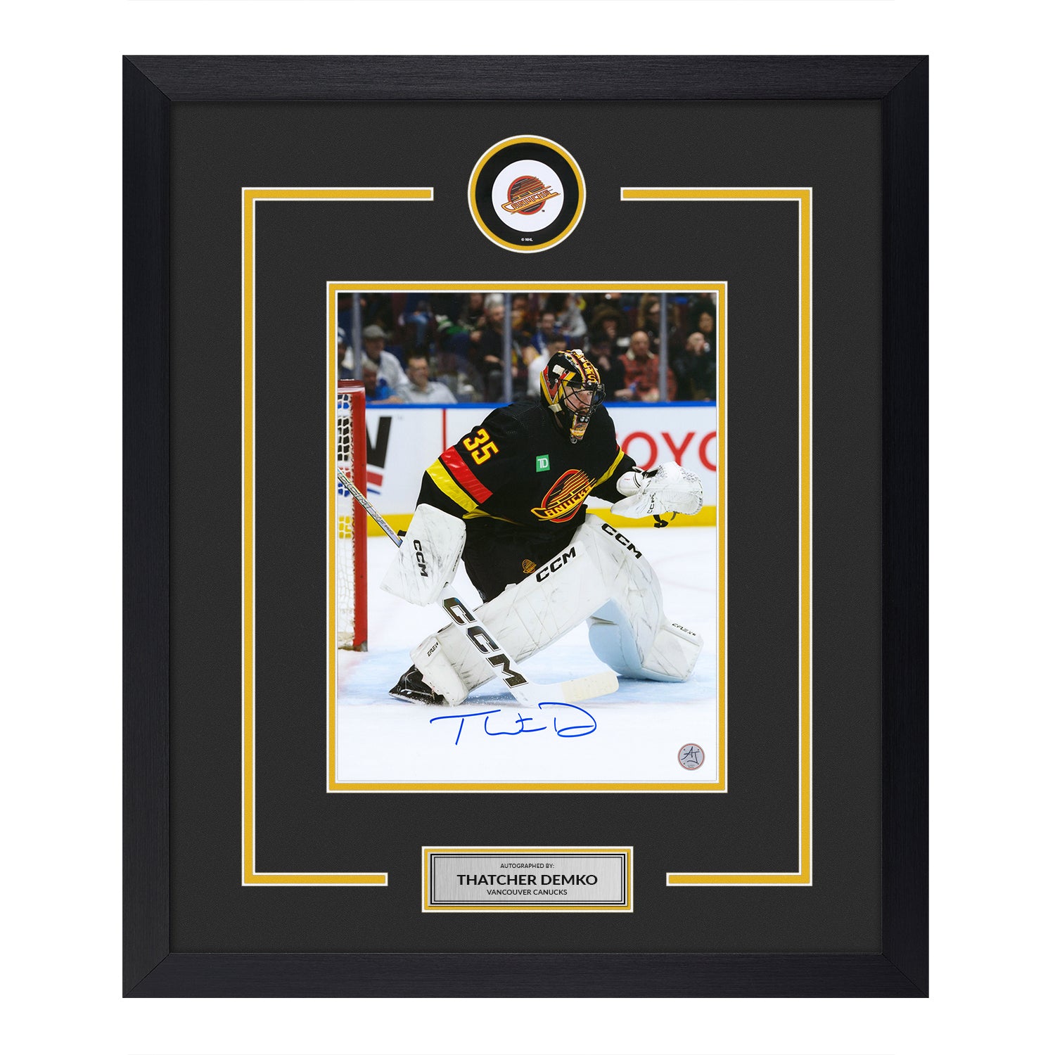 Thatcher Demko Autographed Vancouver Canucks Puck Logo 23x27 Frame