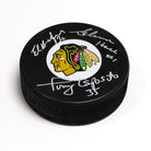 Tony Esposito, Glenn Hall & Ed Belfour Chicago Blackhawks Signed Vezina Puck