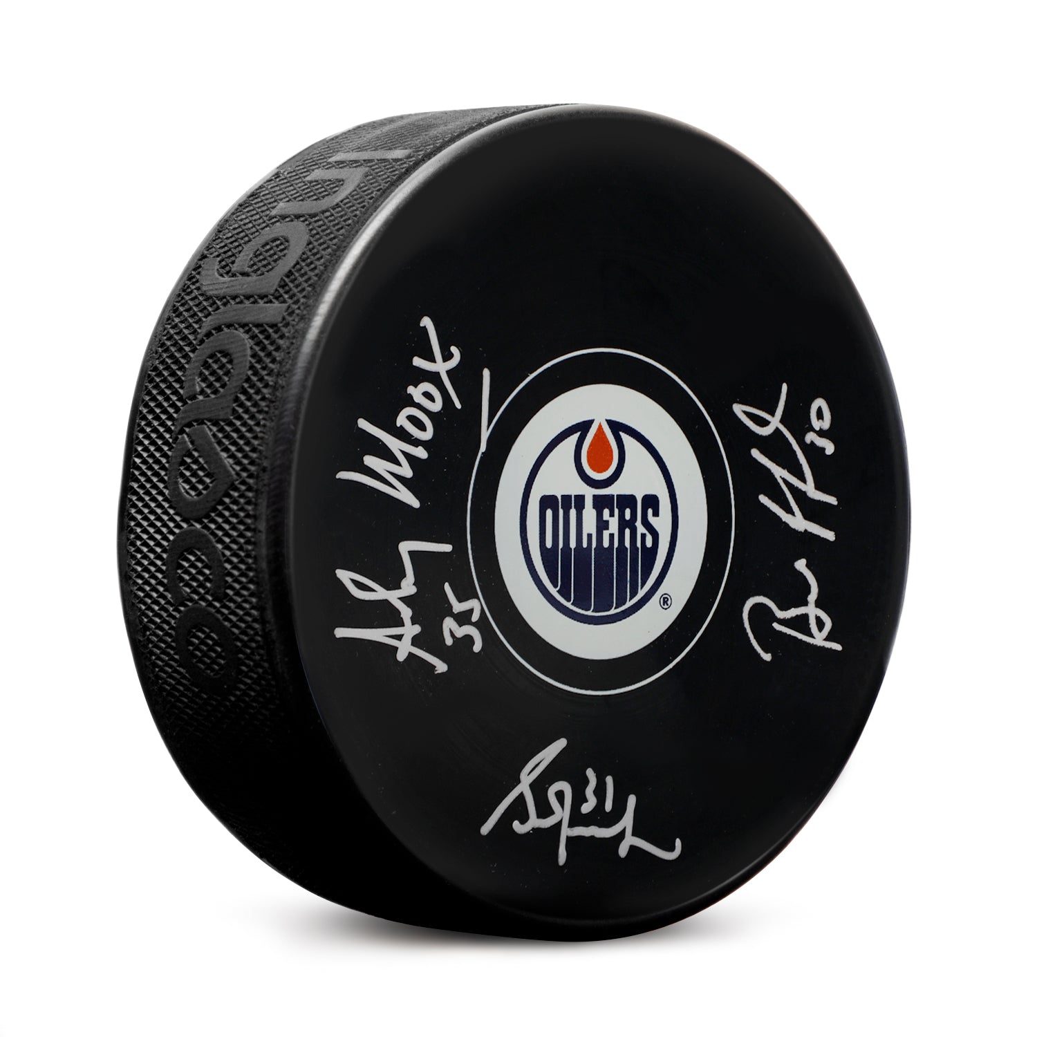 Edmonton Oilers Grant Fuhr - Andy Moog - Bill Ranford Autographed Hockey Puck