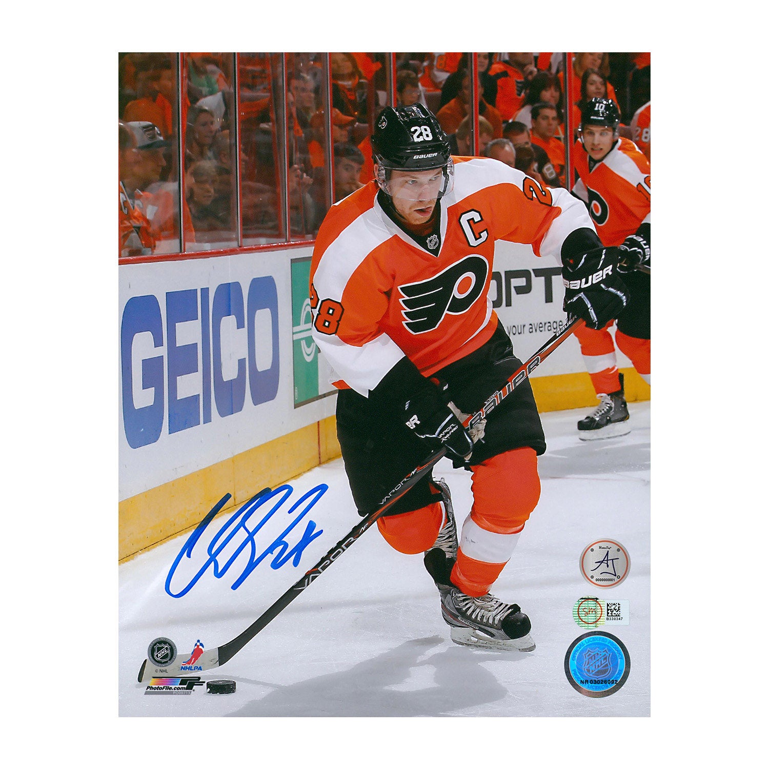Claude Giroux Autographed Philadelphia Flyers Puck Rush 8x10 Photo