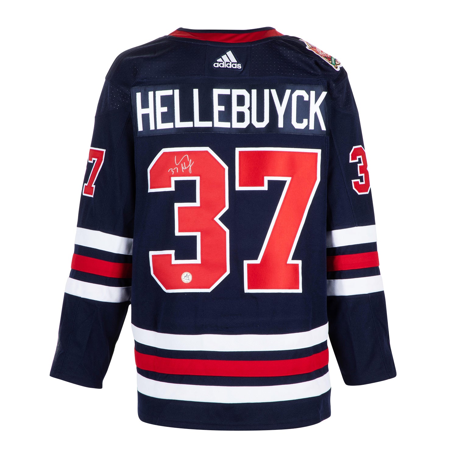 Connor Hellebuyck Signed Winnipeg Jets 2019 Heritage Classic adidas Jersey