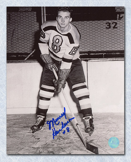 Murray Henderson Autographed Boston Bruins Black and White 8x10 Photo