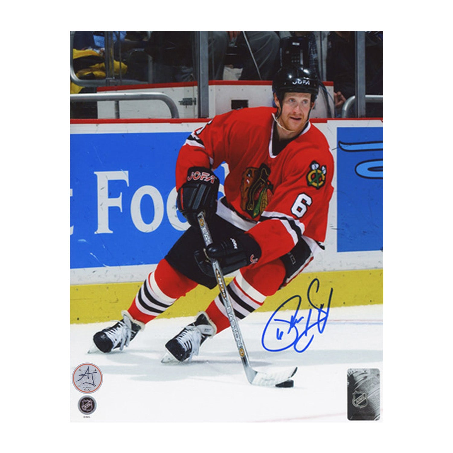 Phil Housley Autographed Chicago Blackhawks Puck Rush 8x10 Photo