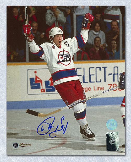 Phil Housley Autographed Winnipeg Jets Goal Celebration 8x10 Photo