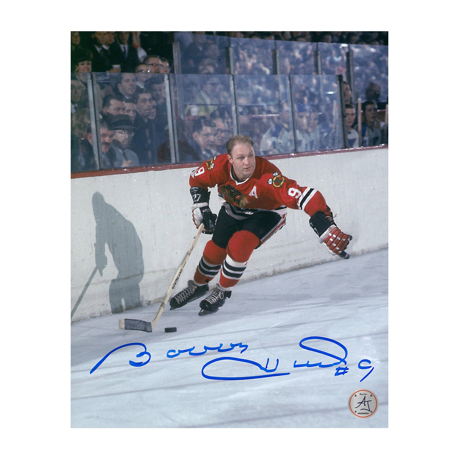 Bobby Hull Autographed Chicago Blackhawks Puck Rush 8x10 Photo