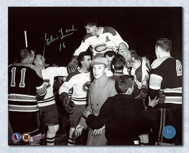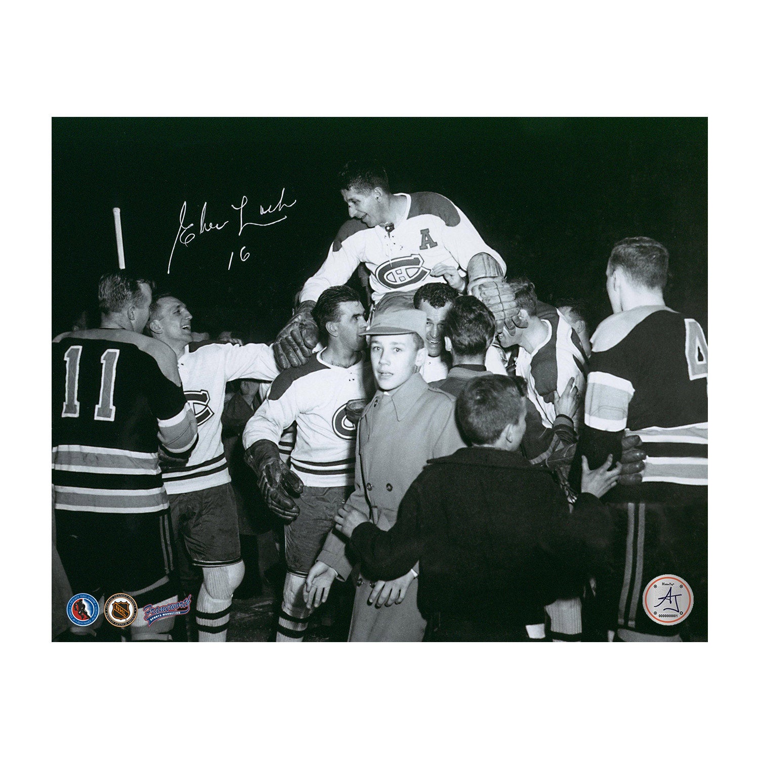 Elmer Lach Autographed Montreal Canadiens Carry Off Celebration 8x10 Photo