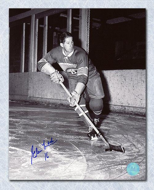 Elmer Lach Autographed Montreal Canadiens Black & White Action 8x10 Photo