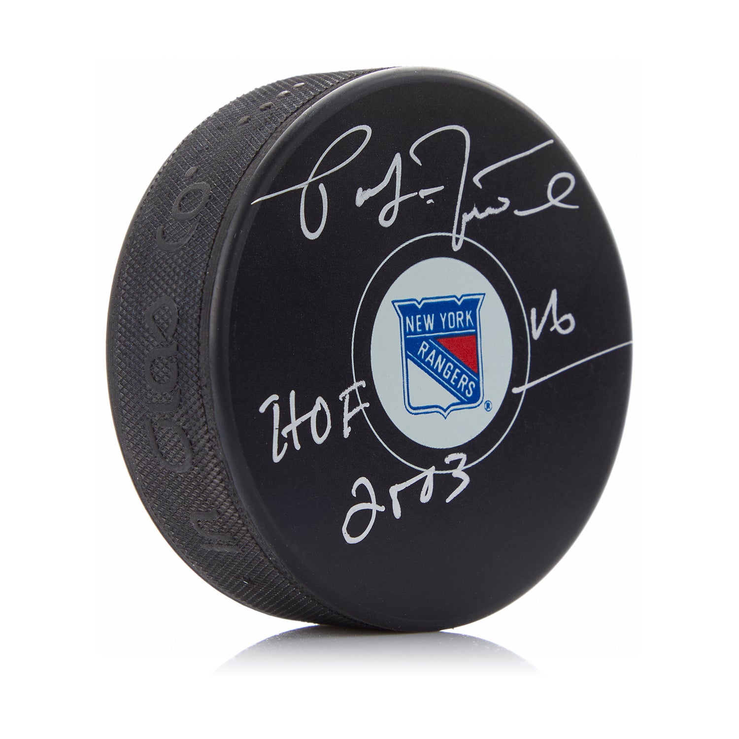 Pat LaFontaine Signed New York Rangers Hockey Puck with HOF Note