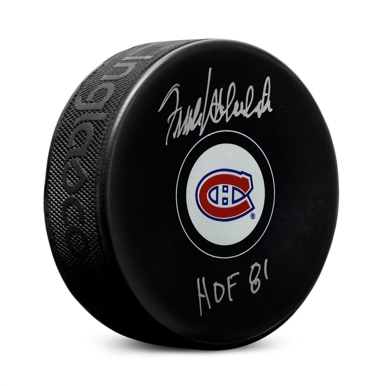 Frank Mahovlich Autographed Montreal Canadiens Hockey Puck with HOF Note
