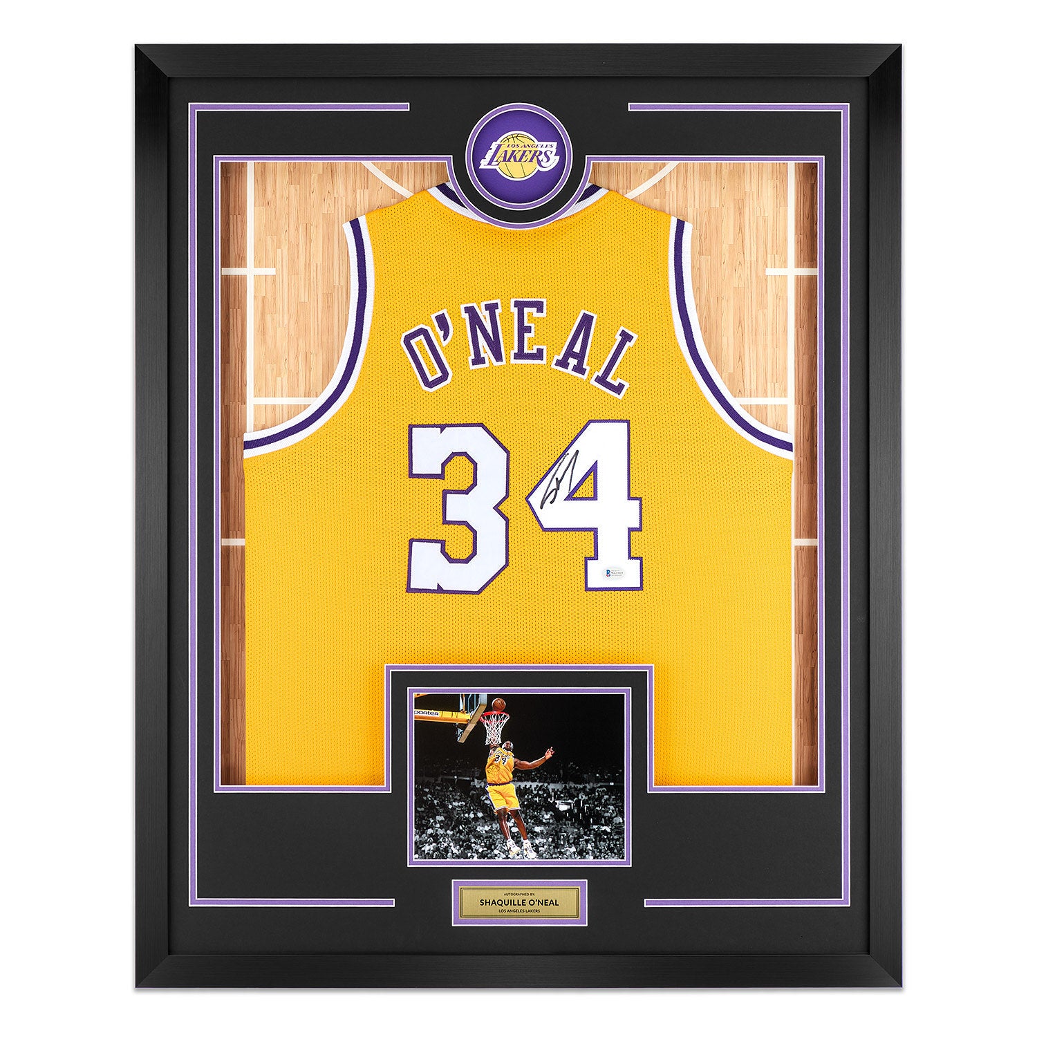 Shaquille O'Neal Signed Los Angeles Lakers Team Logo 36x44 Jersey Frame