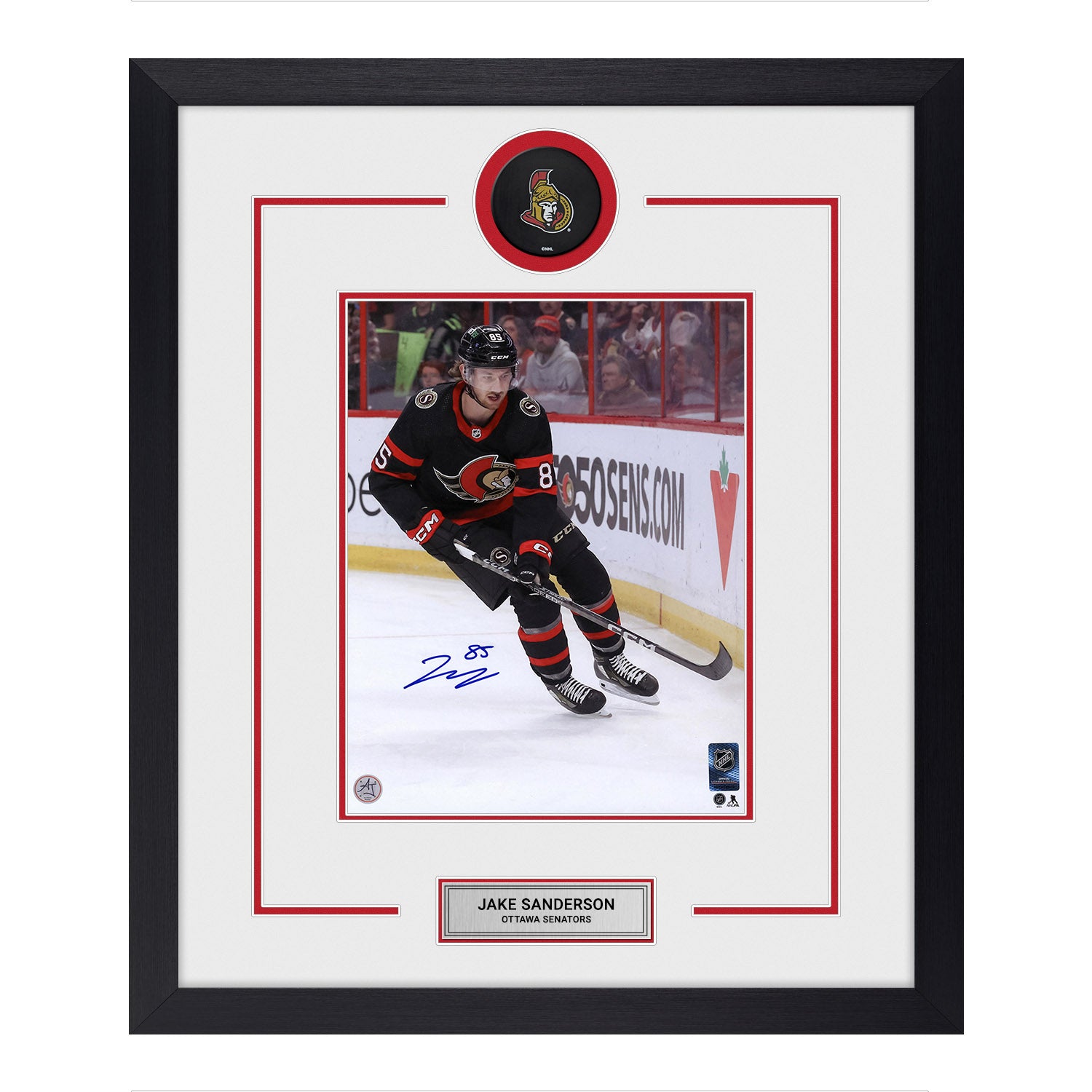 Jake Sanderson Signed Ottawa Senators Puck Logo 23x27 Frame