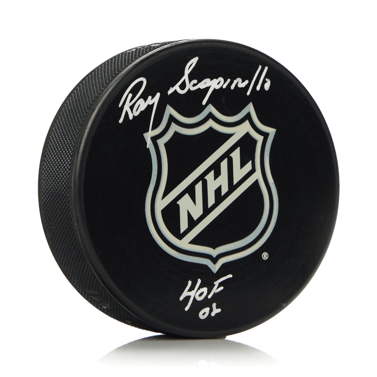 Ray Scapinello Signed NHL Hockey Puck with HOF Note