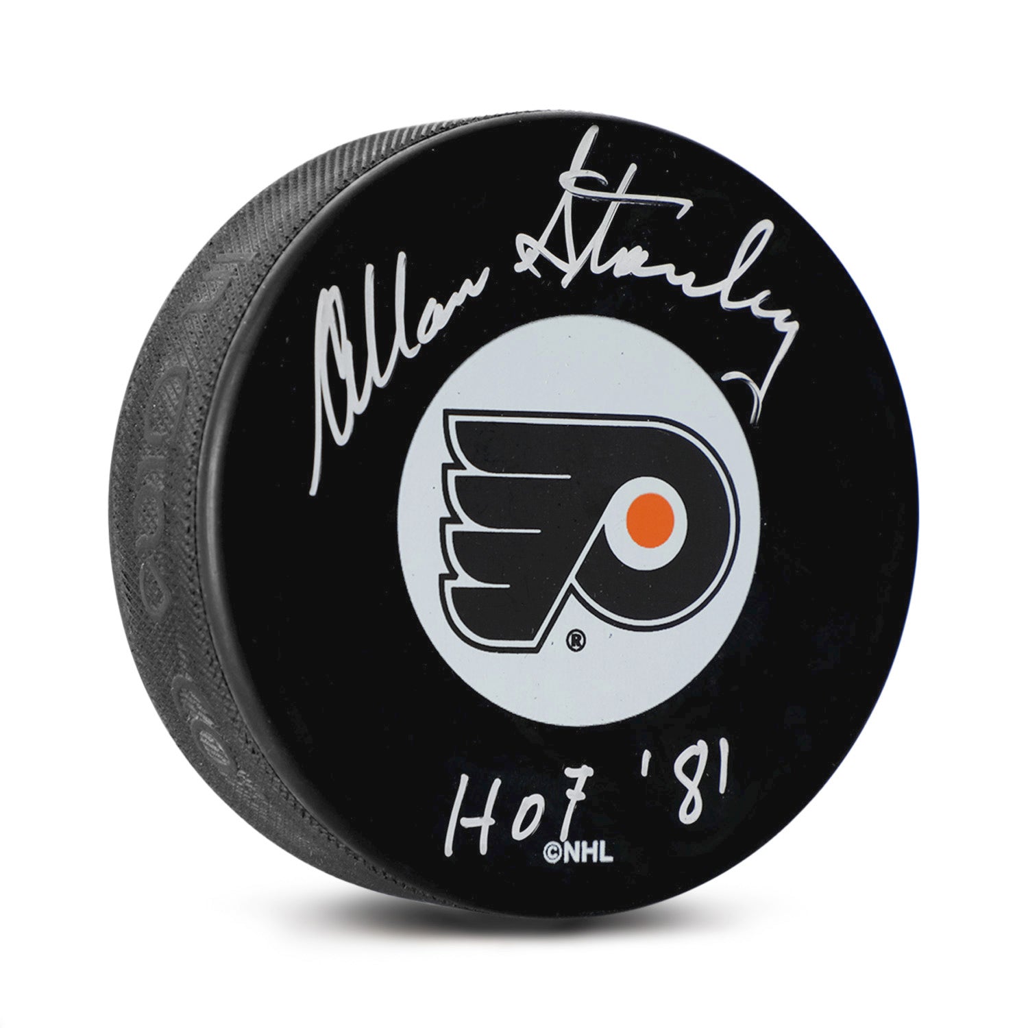 Allan Stanley Signed Philadelphia Flyers Hockey Puck with HOF Note
