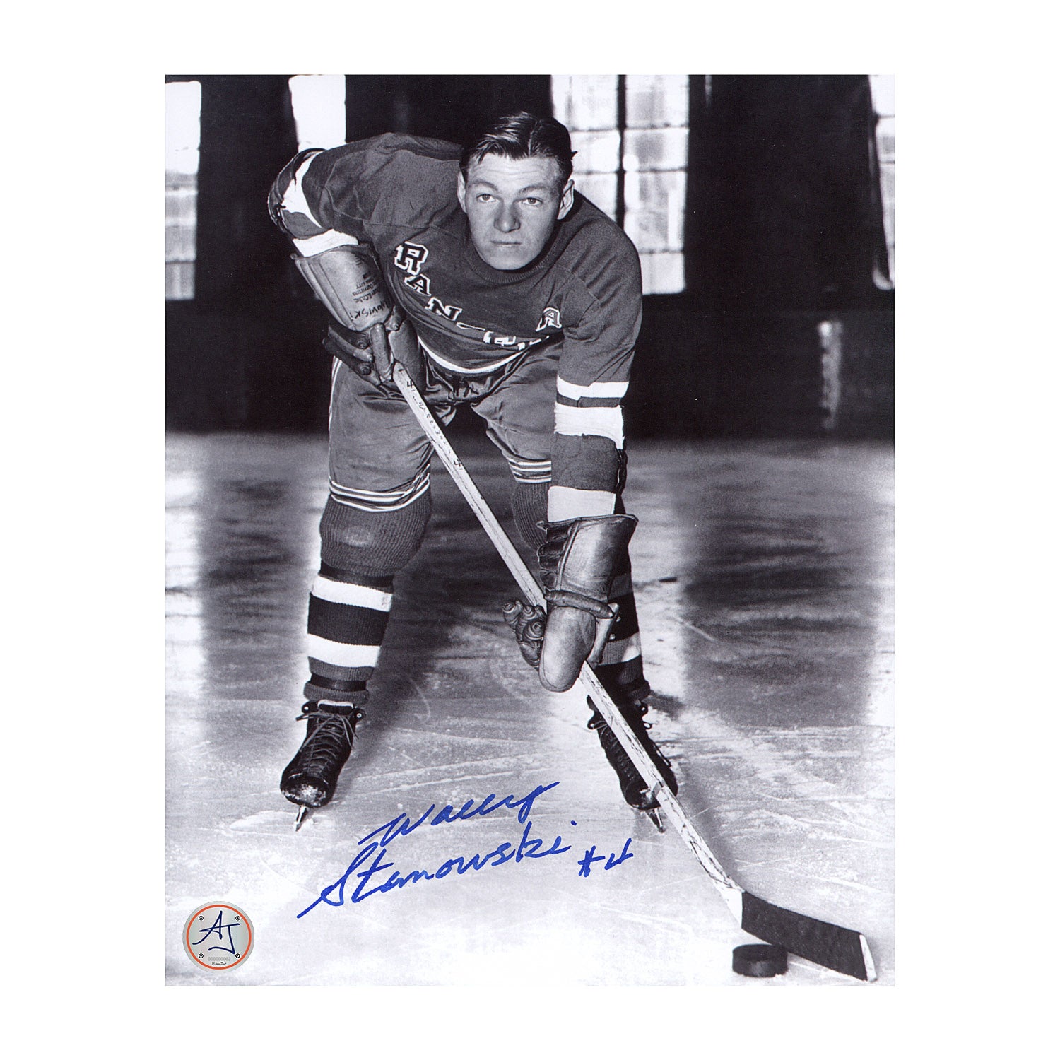 Wally Stanowski Autographed New York Rangers Black and White 8x10 Photo