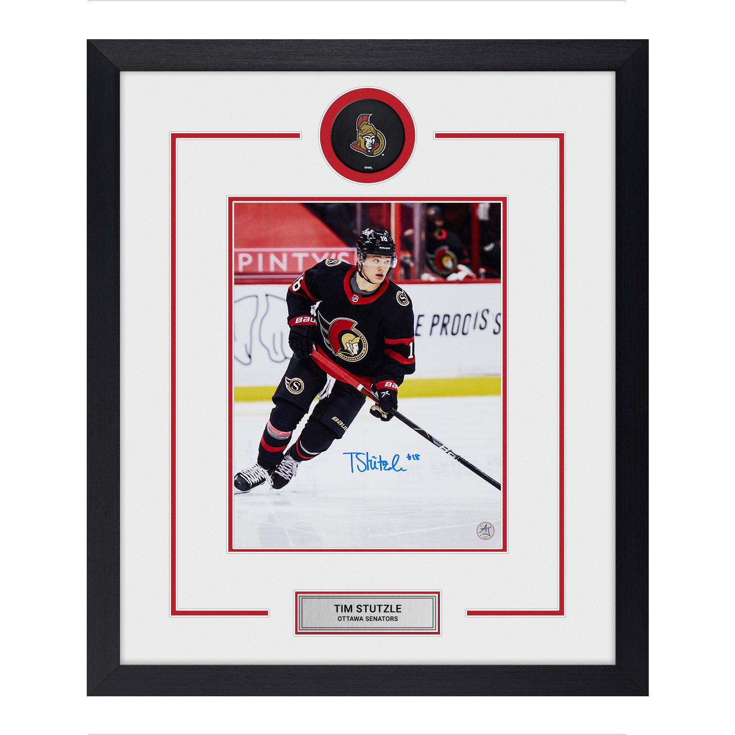 Tim Stutzle Autographed Ottawa Senators Puck Logo 23x27 Frame