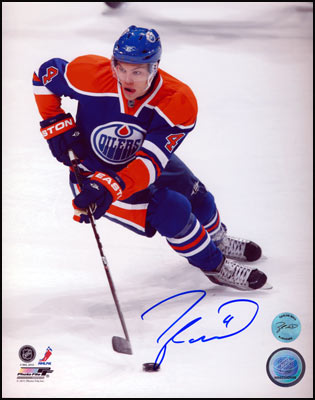 Taylor Hall Signed Edmonton Oilers Puck Control 8x10 Photo