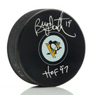Bryan Trottier Autographed Pittsburgh Penguins Hockey Puck with HOF Note