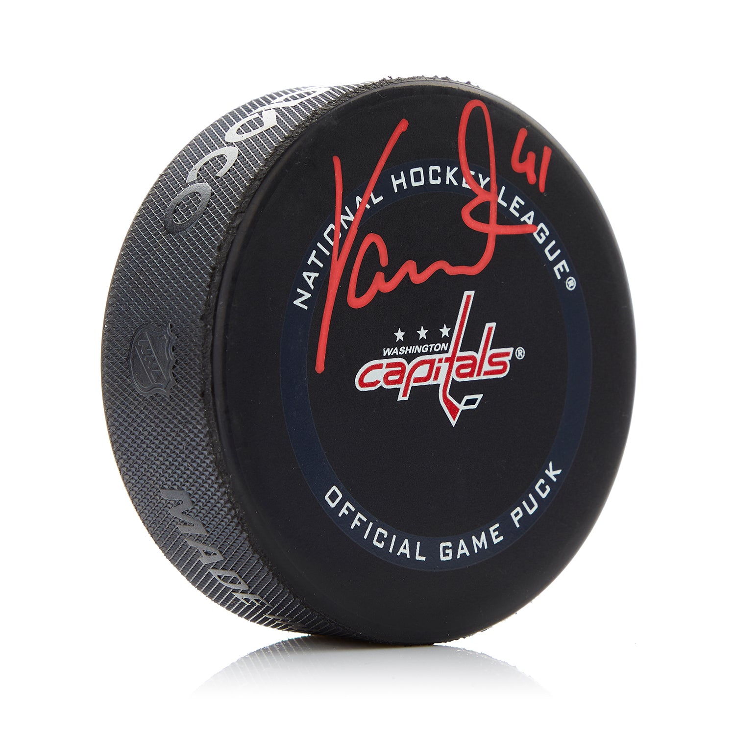 Vitek Vanecek Signed Washington Capitals Official Game Puck. Product Code VANVWCA22PKA01.