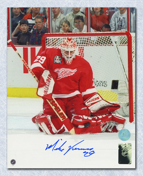 Mike Vernon Signed Detroit Red Wings Butterfly Save 8x10 Photo