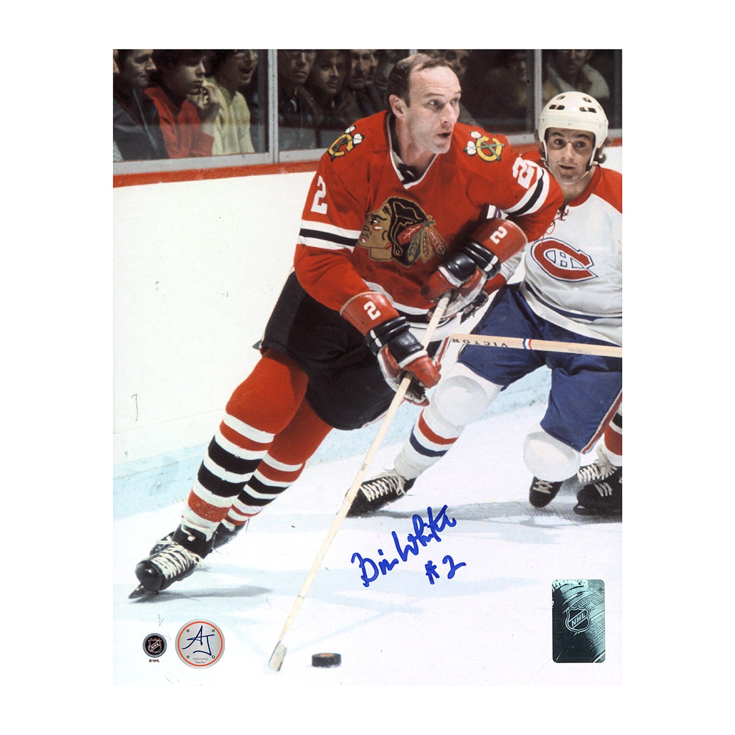 Bill White Autographed Chicago Blackhawks Puck Rush 8x10 Photo